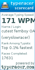 You can place this image anywhere on the web (your blog or Facebook, for example). It will update automatically with your new score each time you complete another race.